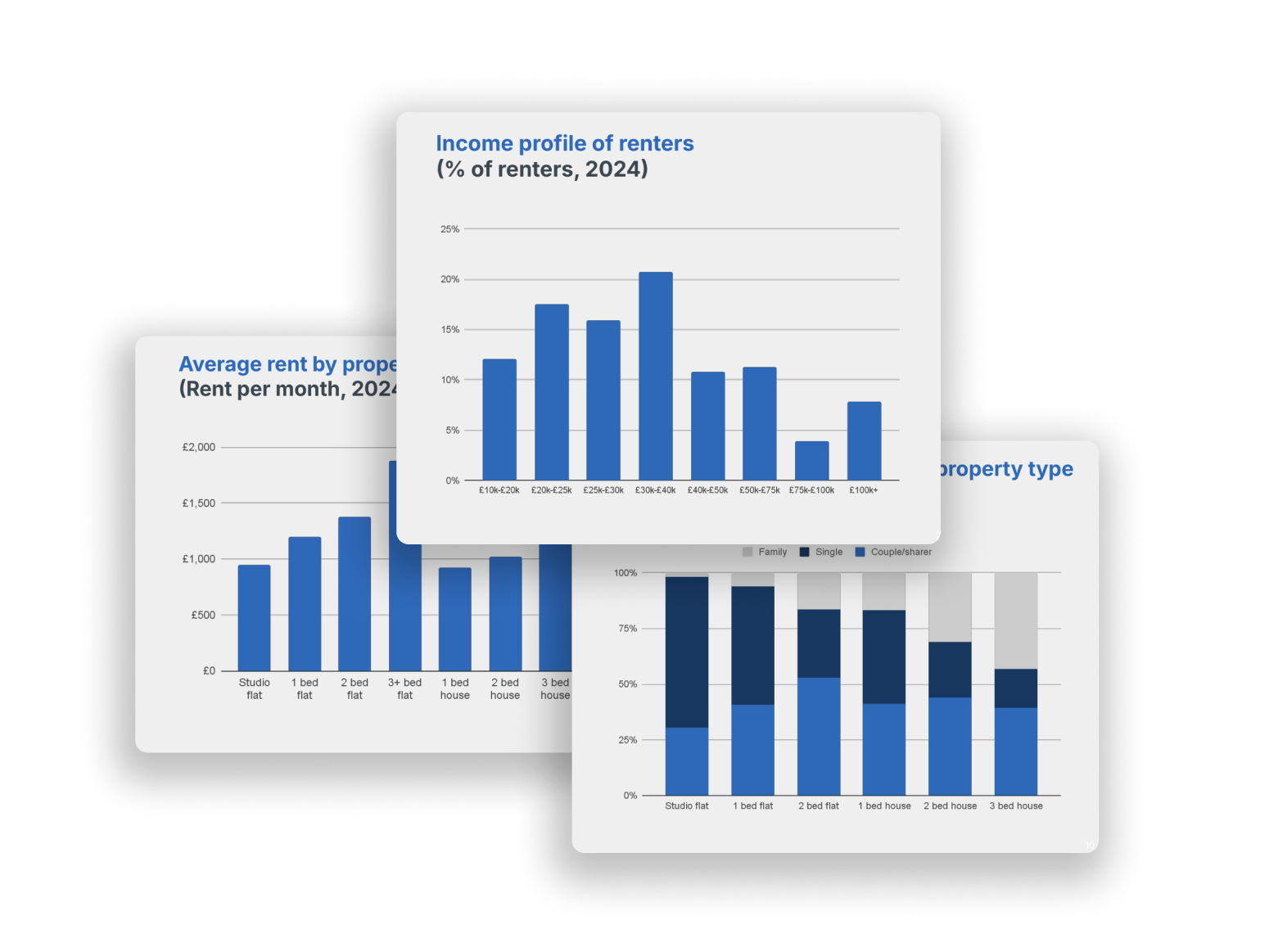 Includes Dataloft Rental Market Analytics, the UK’s most comprehensive source of achieved rents and renter demographics.